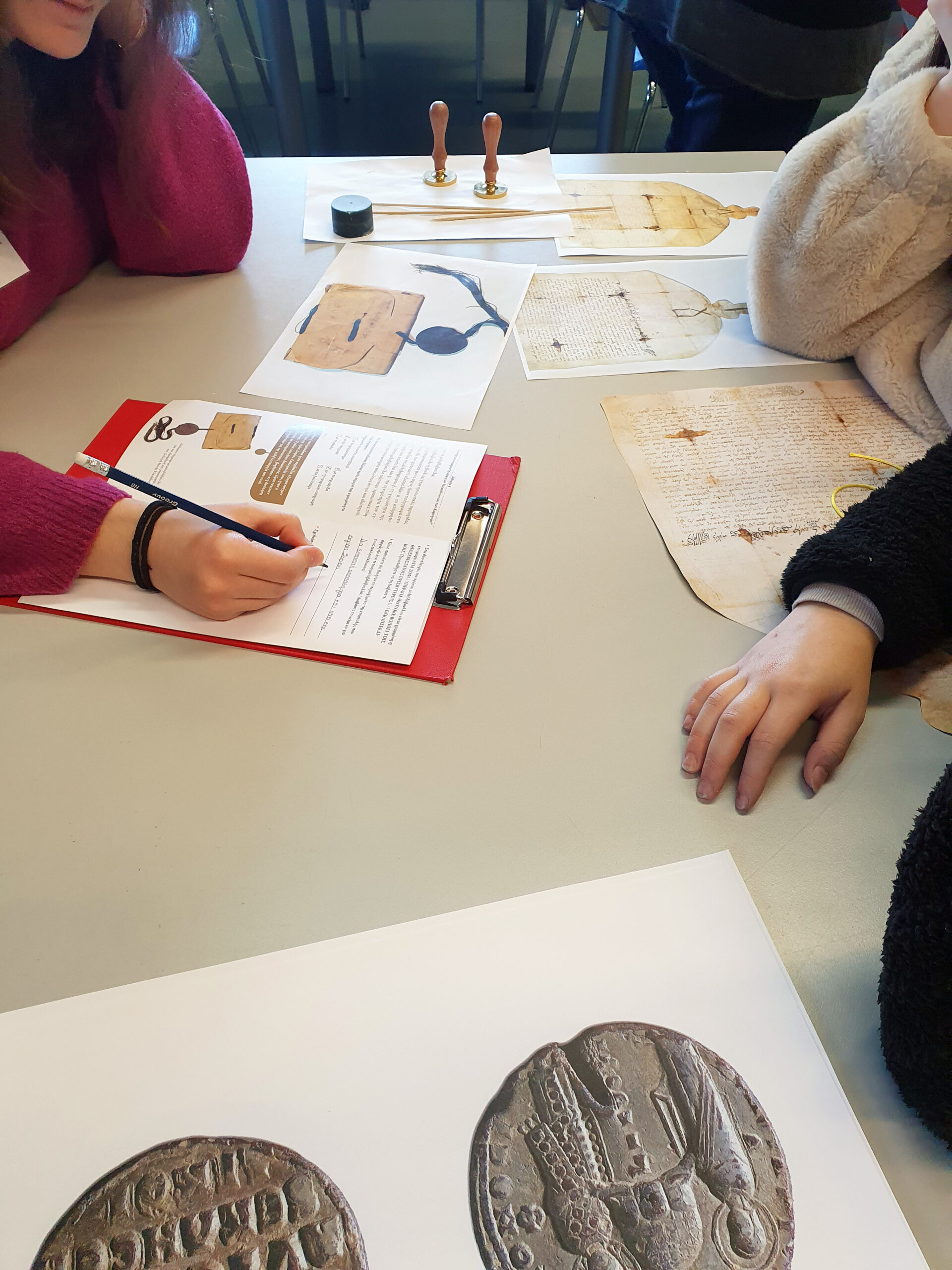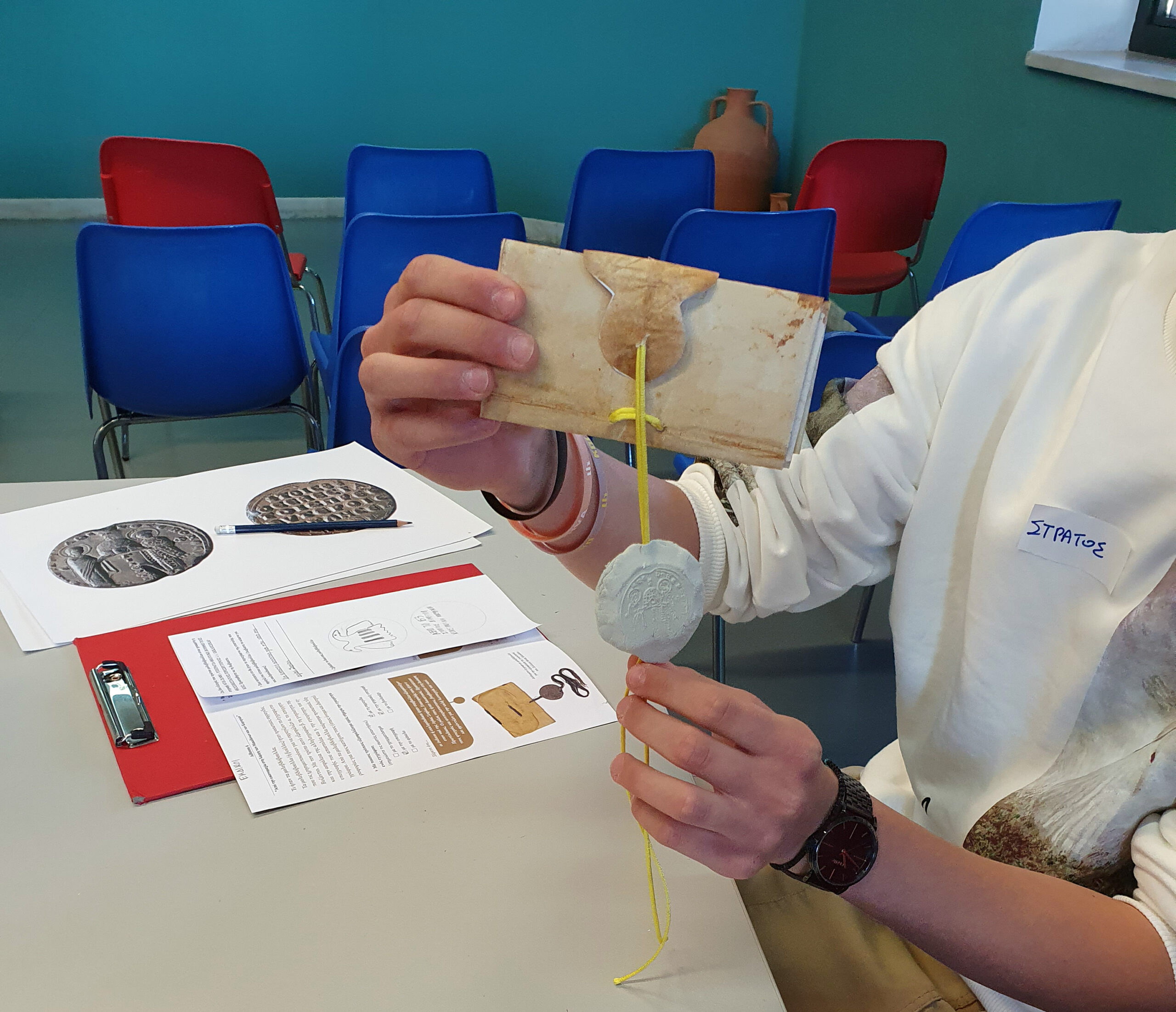 - θα μάθουν να διπλώνουν ένα βυζαντινό έγγραφο και να το σφραγίσουν με μολυβδόβουλλο από πηλό